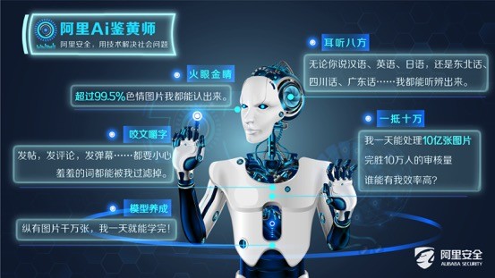 阿里巴巴集團安全部日前公布最新的「AI鑑黃」技術,透過演算法過濾每天上億張可能涉及色情的圖片,可提升2000倍的效率,減少「人工鑑黃師」人力的需求、提高鑑別準確度。近期已經上線公測,語音、影片等多媒體領域,並支援中文、英文、日文和俄文等多國語言,甚至無語義的呻吟聲也能識別。