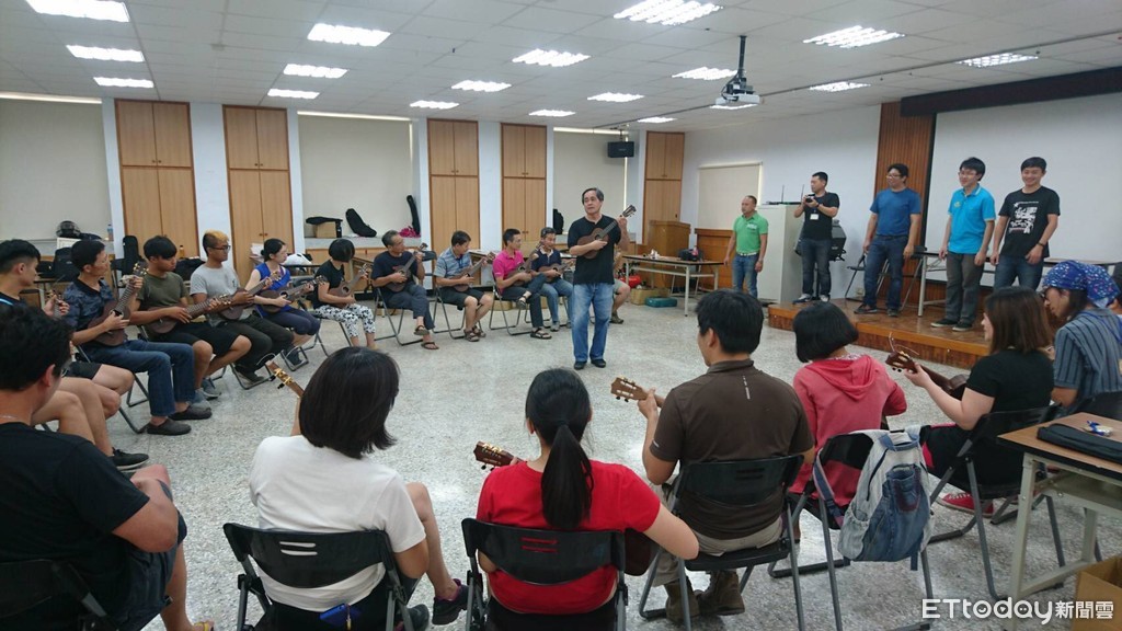 除了人手一把烏克麗麗外,吉他製作名師Adolfo Timute Toyoda也教大家如何進行樂器調音及保養維護等「江湖一點訣」,課程的結尾在老師Adolfo Timute Toyoda的即興帶動下,以一曲披頭四的黃色潛水艇Yellow Submarine團體合奏畫下完美句點。