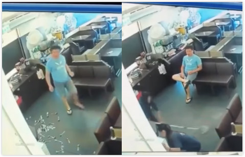 儘管女店員及店長事後已道歉,男子仍怒氣難平,竟將桌上餐點往地上砸,接著不斷大聲飆罵,在咆哮的同時還不忘走到自助區倒飲料;更過分的是,他將自助區湯匙全撒在地上,甚至上演潑飲料戲碼,讓女員工邊哭邊蹲在地上收拾殘局。