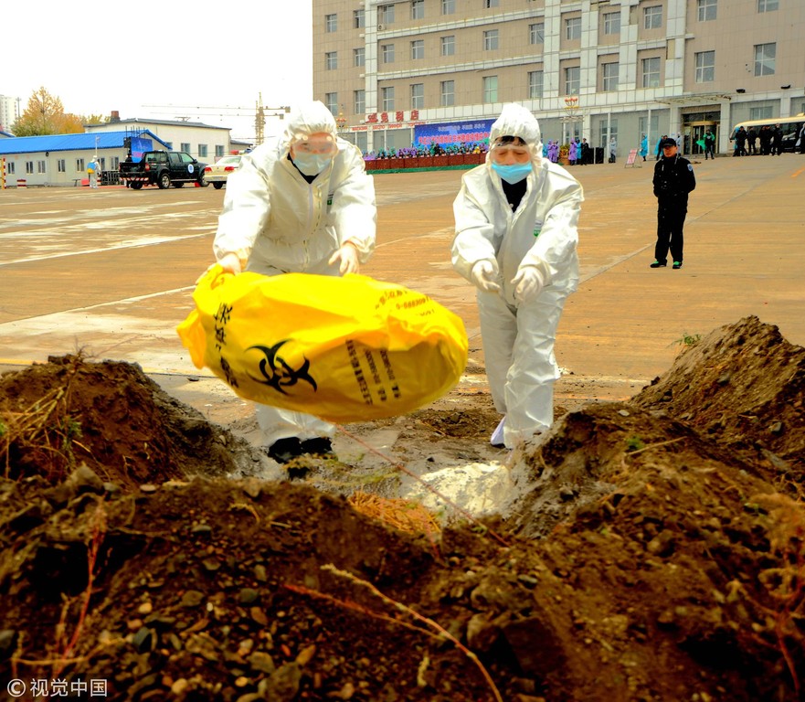 ▼畜牧獸醫局工作人員將帶有非洲豬瘟病毒的病死豬焚燒並掩埋。(圖/CFP)