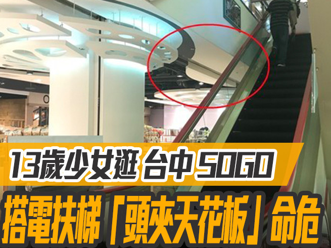 位於台灣大道二段的SOGO百貨20日13時31分驚傳意外!一名13歲少女搭乘手扶梯從13樓往14樓時,頭部遭手扶梯扶手與天花板夾住,目前意識昏迷,警消正全力搶救中。
