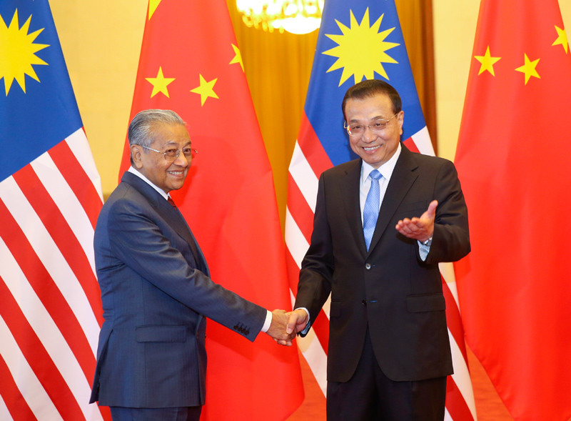 馬來西亞總理馬哈迪訪問中國大陸,20日上午在北京與大陸國務院總理李克強會面。李克強表示,中方願與馬方鞏固傳統友誼;馬哈迪則強調,希望兩國關係發展為雙方帶來益處。而在會面過後,雙方也簽署五份備忘錄,當中包含續簽本幣互換協議,有效期三年。