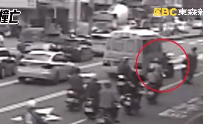 監視器畫面中可以看見,當時車輛綠燈時紛紛往前行駛,陳女也行駛在車陣中間,巴士則行駛在陳女左後方,下一秒陳女就為了閃避違停貨車,稍稍朝內側車道一偏,結果右側後視鏡就被巴士擦撞,陳女就重心不穩連人帶車向左傾倒,接著可以看見巴士車身「上下」晃動輾過陳女。