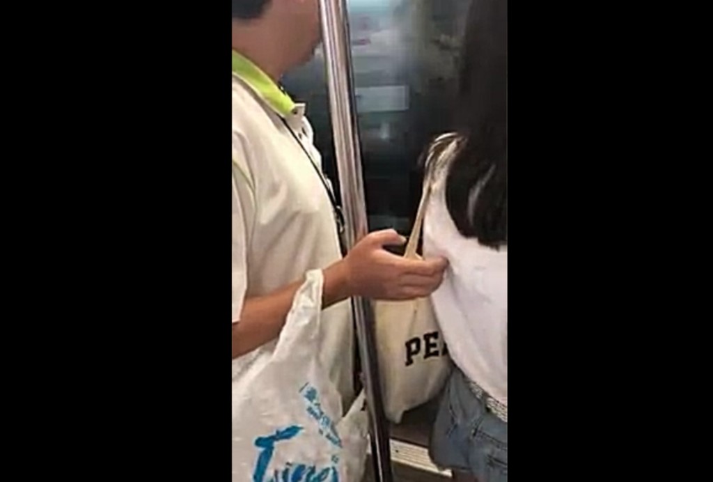 影片中該名男子企圖對1名女子伸出鹹豬手,不斷地以手指遊走在女子背部、手臂等處,伺機等待下手機會,最後用手指貼住女子背部,以即用手觸摸女子手臂,直到捷運進站後作勢離開。