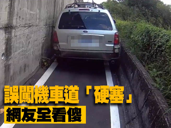 ▲休旅車誤闖機車道「硬塞」走完全程。(圖/網友提供)