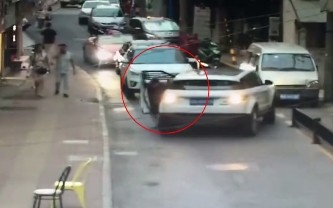 事發於7月31日,監視器畫面顯示,一輛Land Rover(大陸稱「路虎」)逆向進入了單行道,駕駛發現走錯路後,準備倒車原路返回,因為前方車輛多,駕駛急著下車查看路況,但車還掛在倒車檔上,她開門下車的時候,車失控了,加速往後倒,車從她身上壓過去,一旁民眾發現後立刻上前幫忙踩住剎車。