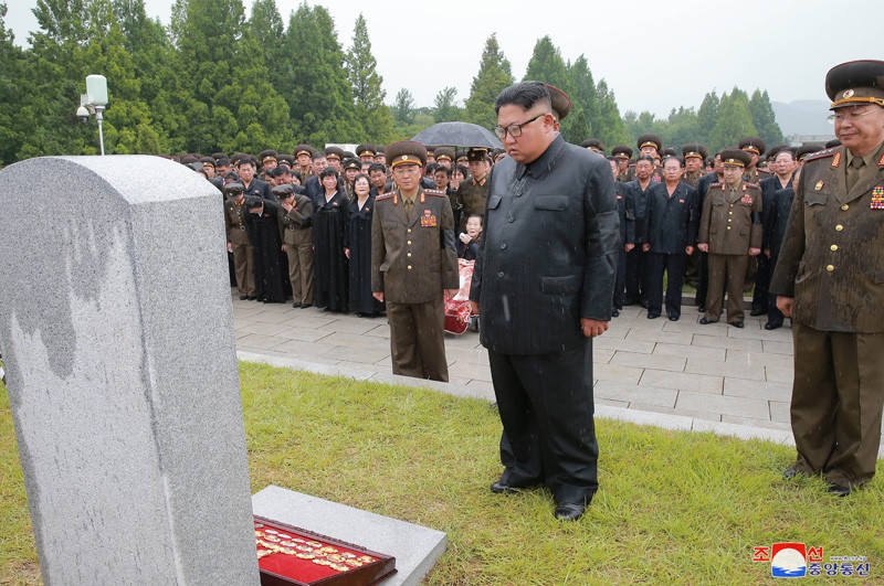 以金正恩及勞動黨中央委員會、勞動黨中央軍事委員會、最高人民會議常任委員會、內閣名義獻上的花圈被供在金永春墳前,金正恩與治喪委員會、金永春家屬及武力機關官員就在雨中為他哀悼,全身都被淋濕,金正恩也數度低頭露出悲痛神情。