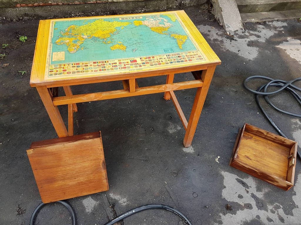 ▲木桌質感很不錯,上面印的世界地圖依然清晰可見。(圖/網友授權提供,請勿任意轉載)