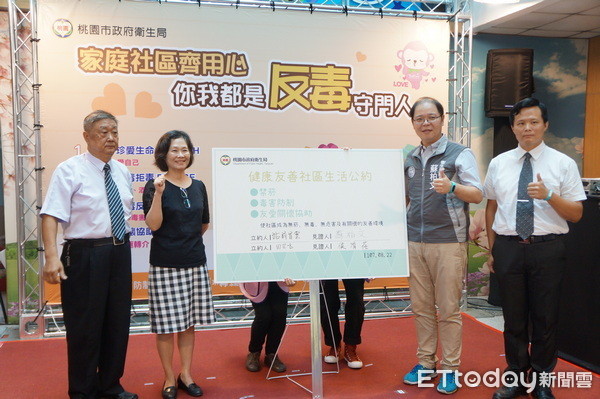 ▲法務部、桃園衛生局等單位,聯合社區大樓共同反毒。(圖/記者楊淑媛攝)