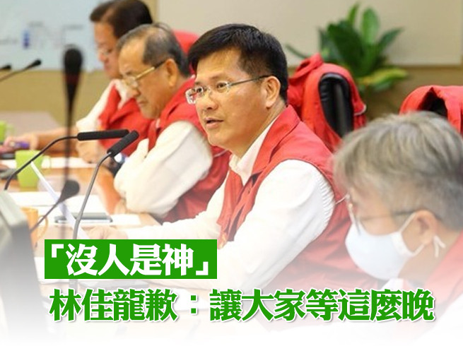 林佳龍也現身道歉「很抱歉讓大家等到這麼晚」,研判各種資訊後,為了不讓市民上班上課路途中必須必須冒著生命及身家風險,市府決定台中市24日停班停課。