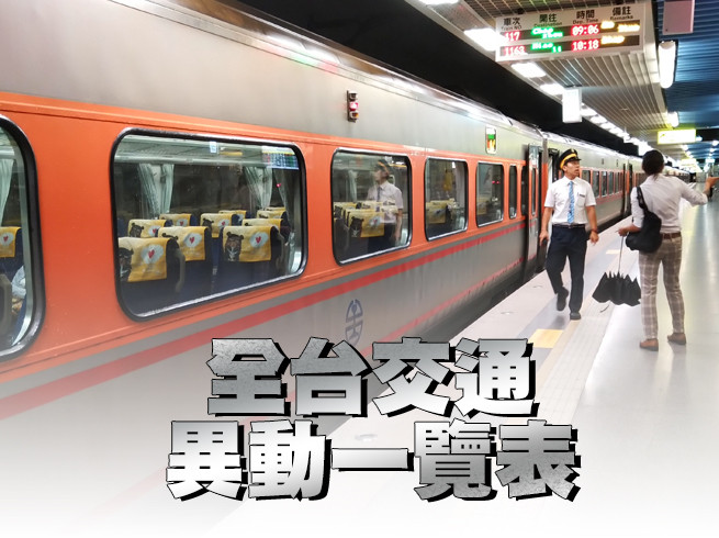 熱帶低壓雨彈轟炸南台灣,台鐵於凌晨5點緊急公告,今天(24日)中午12點前,西部幹線南下部份,自強號僅行駛至嘉義站,莒光號則行駛至彰化站,另101次自強號、167次自強號停駛,751次莒光號改由新左營特開。西部幹線北上多數自強號與莒光號均停駛,僅少數自強號班次正常行駛。高鐵部份則全線正常行駛。