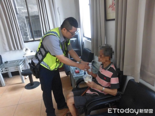 ▲員警體貼購買適合糖尿病的食品供林姓老翁食用以防低血糖。(圖/中壢警分局提供)