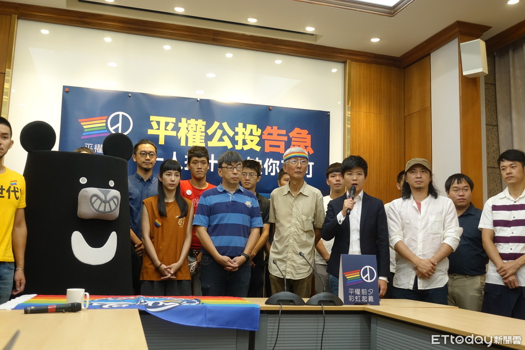 平權公投包含婚姻平權修定民法、性別平等教育兩案,為衝刺婚姻平權公投連署件數,公投小組上午在立法院召開記者會,除台灣同性婚姻釋憲案的聲請人祁家威出面發聲,老面孔民進黨立委段宜康仍前來力挺同志,社民黨召集人范雲也現身,備受年輕世代喜愛的藝人焦糖(陳嘉行)、温貞菱、台灣吧黑啤及作家溫朗東、網路紅人四叉貓都到場支持。