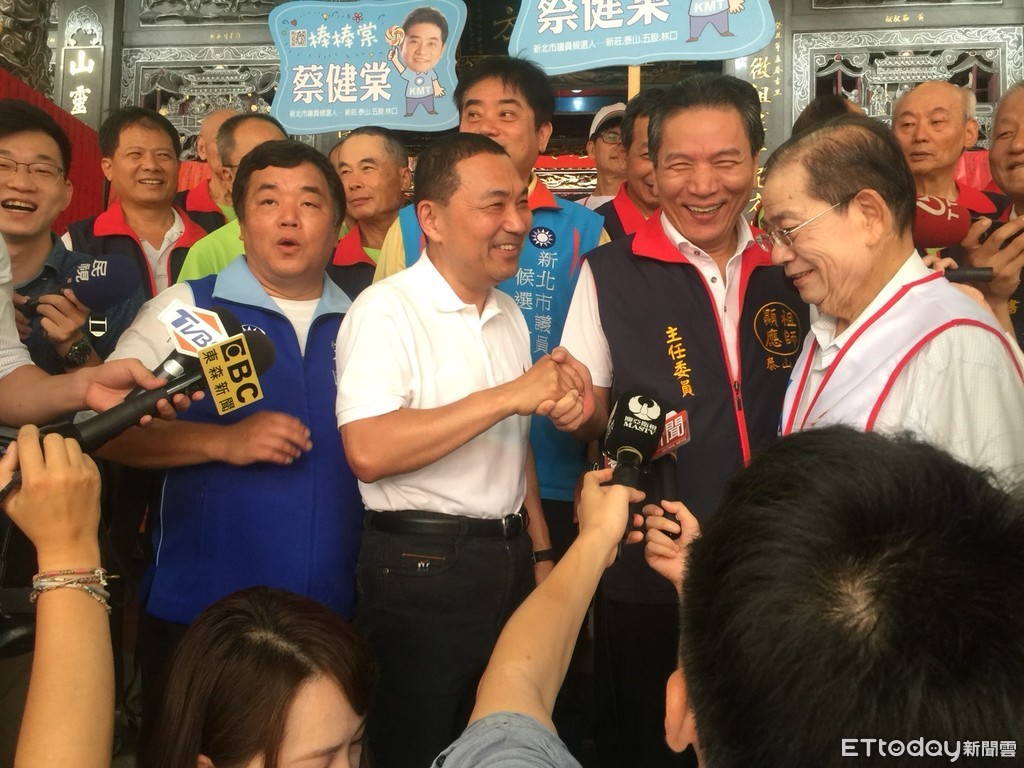▲國民黨新北市長參選人侯友宜參拜下泰山巖。(圖/記者蔣婕妤攝)