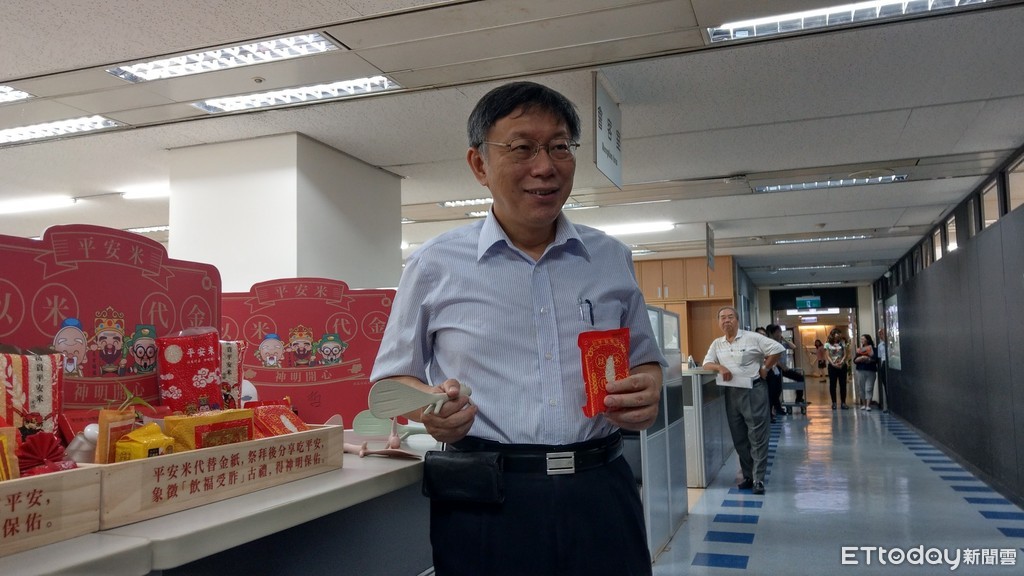 中元節將至,台北市政府民政局去年推動「以米代金」成效佳,今年進一步增加到29間廟宇;柯文哲日前抽空巡視民政局時也說,「這個(米)拜完可以帶回去,不想帶回去還可以捐給廟方,就變成慈善事業,所以有文化、有藝術、有公益,全部都有了」。此外,市府還推出「金銀紙錢集中焚燒」措施,金紙、銀只分袋裝由專車巡收送往集中焚燒,擺脫過去街頭巷尾沿路邊燒金紙煙霧瀰漫的狀況。