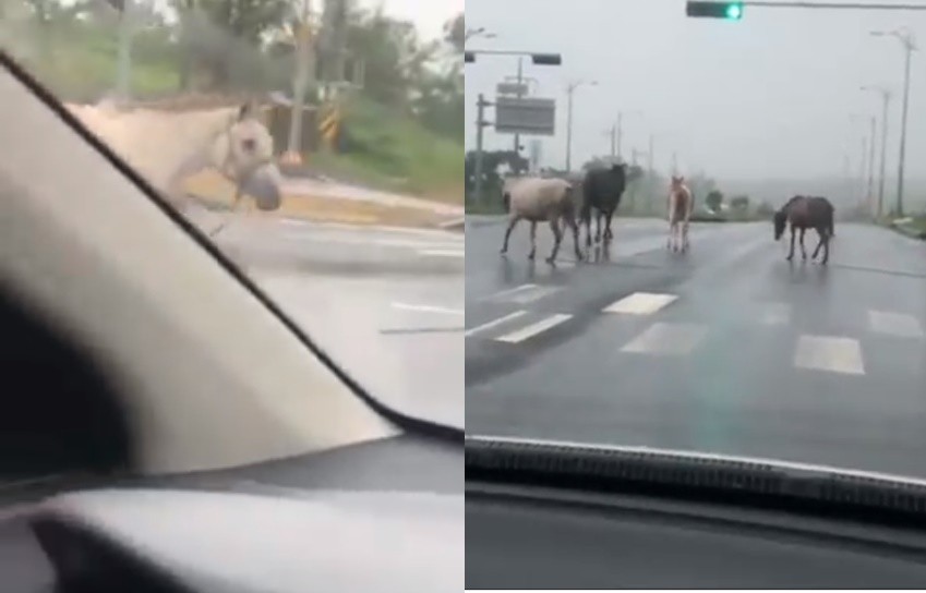 蘇力颱風威力驚人,23日正式登陸南韓後,各地災情慘重,而首當其衝的濟州島則是傳出有馬舍的圍欄被吹壞,讓被眷養的馬群衝出牧場,應是闖入車道。一名小客車駕駛經過這群勇闖道路的「不速之客」,嚇得趕緊拿出手機拍照錄影。