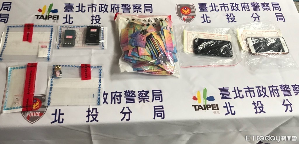 ▲警方查獲的毒品及相關器材證物。(圖/實習記者謝亞諭攝)