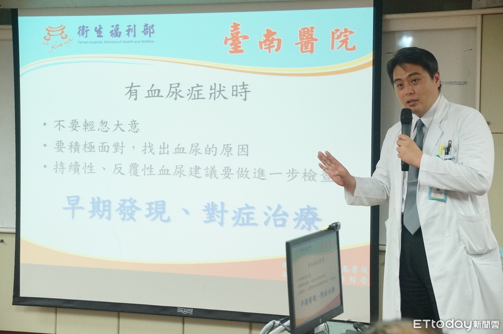▲衛生福利部台南醫院泌尿科醫師陳俊孚指出,反覆血尿要小心,不是泌尿道感染而是腫瘤的可能。(圖/記者林悅翻攝)