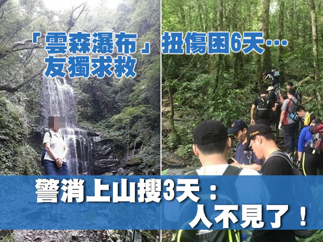 高女(55歲)報案指稱,她18日與陳女(67歲)到雲森瀑布、熊空山區一帶登山,因回程已晚,臨時決釘在山上過夜,未料19日下山時陳女腳踝意外扭傷。高女表示,她19、20兩日陪伴陳女在山上過夜,至21日決定獨自下山求助。