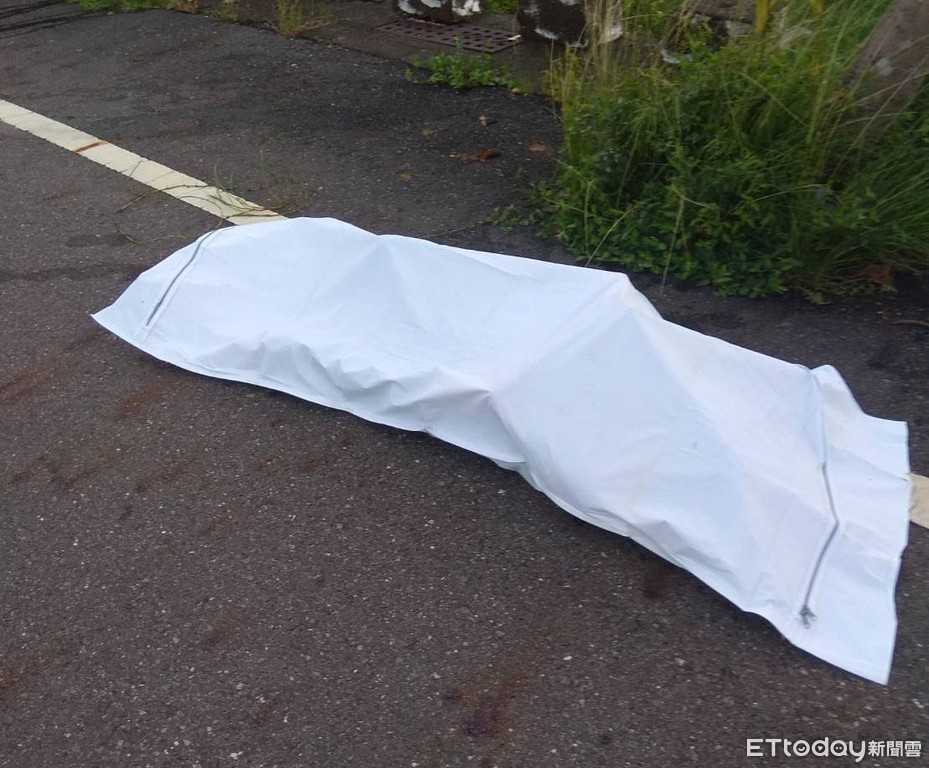 ▲台南市南區鯤鯓路往西約200公尺處河道內,8月25日下午有民眾發現一具浮屍,消防局協助將死者打撈上岸由警方查處。(圖/記者林悅翻攝,下同)