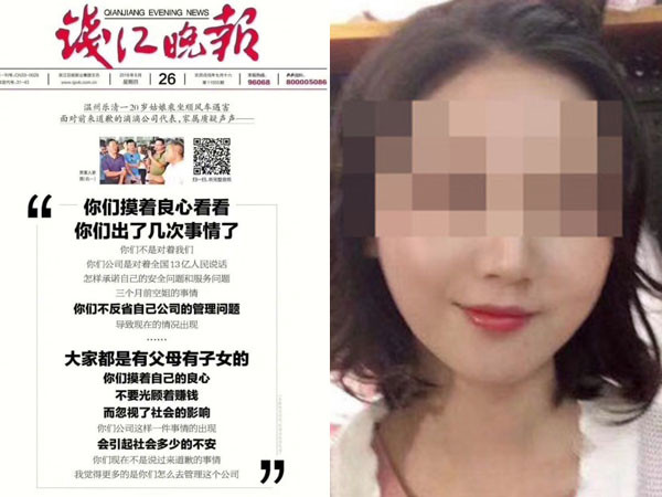 浙江溫州樂清滴滴司機性侵棄屍案,引起社會各界及官方高度關注。當地媒體《錢江晚報》26日特別在頭版刊登全文,大罵滴滴管理出問題,直言「大家都是有父母有子女的,摸著自己的良心」、「不要光顧著賺錢,忽視了社會的影響」,更稱該公司在3個月前空姐遇難後,不反省管理問題,才導致現在的情況出現。