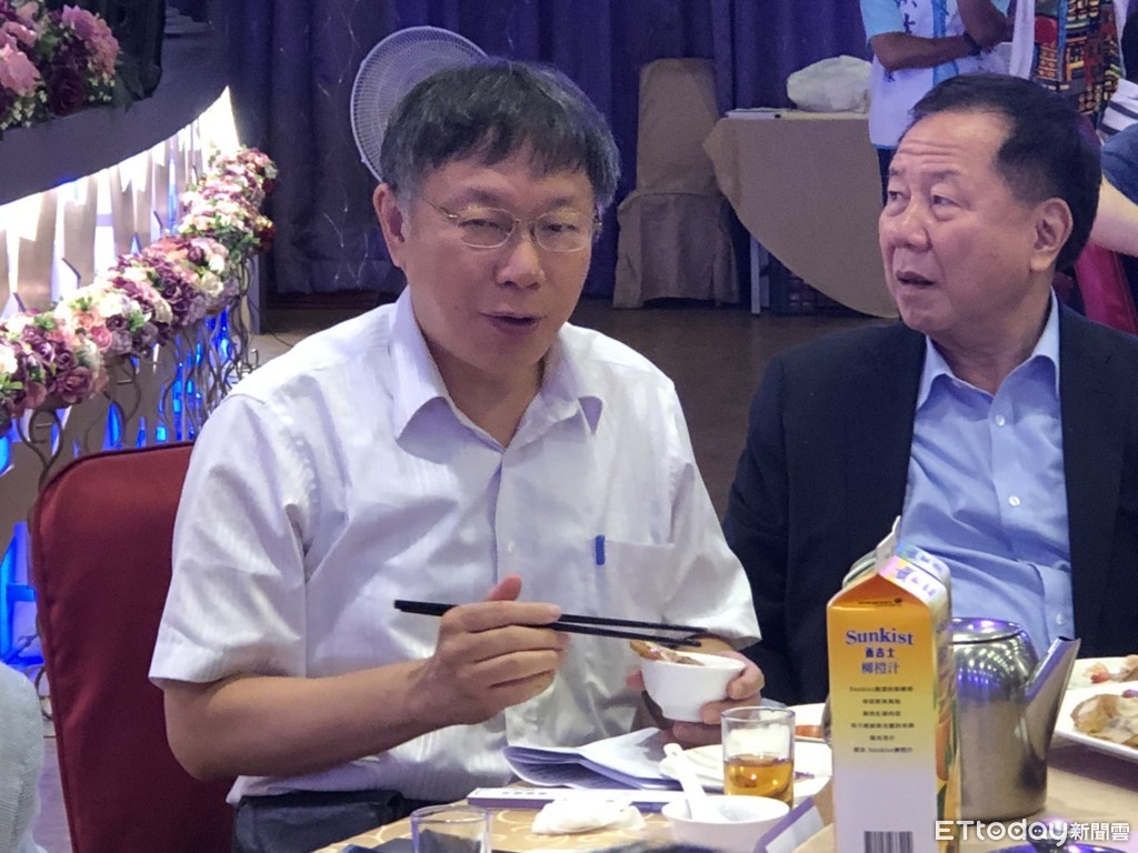 台北市長柯文哲26日晚上再度與親民黨主席宋楚瑜同台,替台北市議員忠孝醫院副院長洪士奇參選人首次站台造勢,宋楚瑜致詞到一半柯文哲剛好到場,但尷尬的是柯一屁股坐下就先吃起飯來。洪士奇上台致詞表示,除了解釋先前被砲轟的柯P認同卡,自己也公布已經簽屬;柯文哲也表示,洪落選4次,這次第5次參選一定會當選,還強調「政治要好,找正常人就可以。」