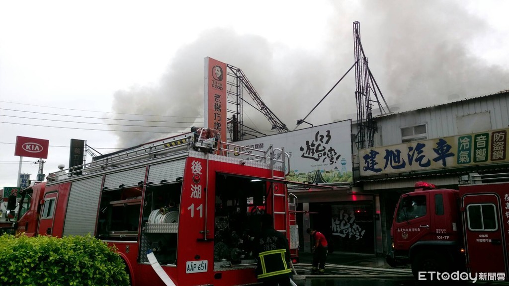 嘉義市北港路、世賢路2段一棟建築物今天(27日)清晨6時許發生火警,現場大量濃煙直竄天際,消防局德安分隊張英勝分隊長率湖內、後湖、東區、文化、德安分隊搶救中。