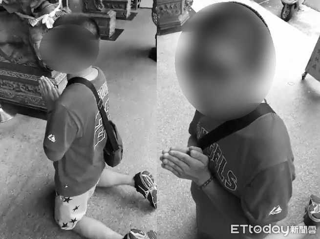 ▲攻擊街友男子在廟口下跪道歉。(圖/臉書粉絲專頁嘉義廟會粉絲團提供,請勿隨意翻拍,以免侵權)