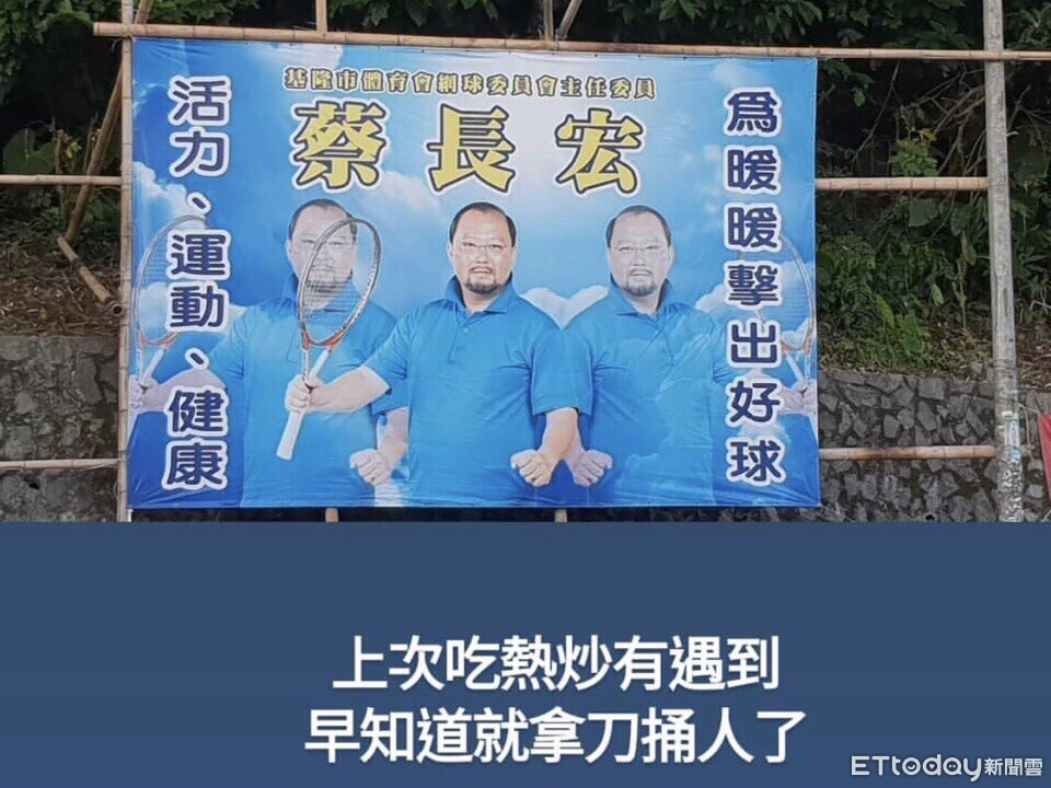 警方表示,基隆市警局第三分局暖暖派出所於9日下午1時許,接獲蔡長宏報案,稱有人在社群網站Instagram上傳1張競選海報圖片,並在圖片下方標寫「上次吃熱炒有遇到 早知道就拿刀捅人了」。蔡男表示,此人在IG公開照片、文字,擔心受到傷害而心生畏懼,請求警方調查。