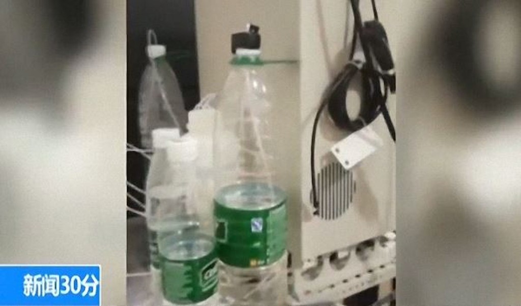 ▲監測器插在礦泉水內,數值還會變化。(圖/翻攝央視,下同。)