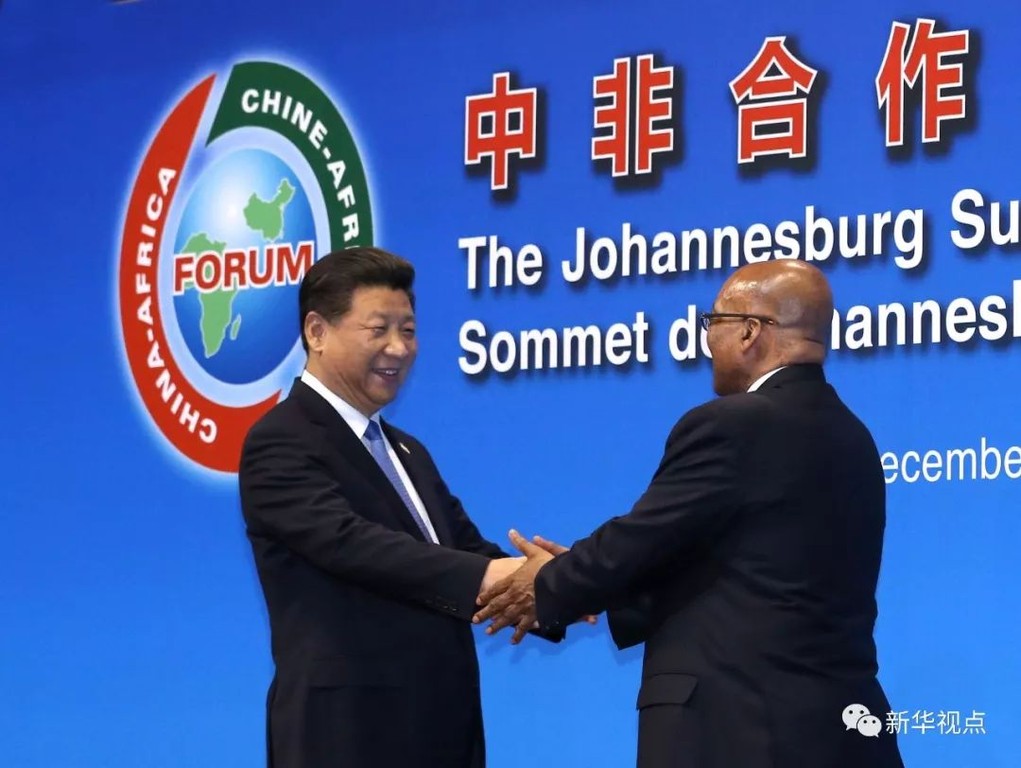 ▲2015年12月,中國國家主席習近平(左)出席中非合作論壇約翰內斯堡峰會,與時任南非總統祖馬合影。(圖/新華社)