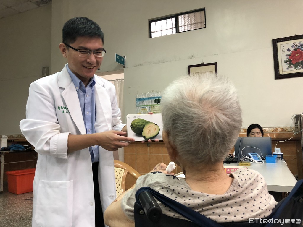 ▲醫師拿圖卡要病人分辨是何顏色何種水果。(圖/記者唐詠絮攝)