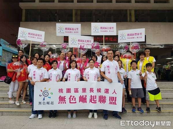 「沒有藍綠,只有效率。」、「政治是人民作主,而不是人民受苦!」全台第一個以家長會長所組成的桃園市「無色崛起」里長聯盟28日成立。5名參選人共同前往桃園區公所,辦理里長參選登記後、展開聯合造勢,期爭取選民認同,為里內服務。