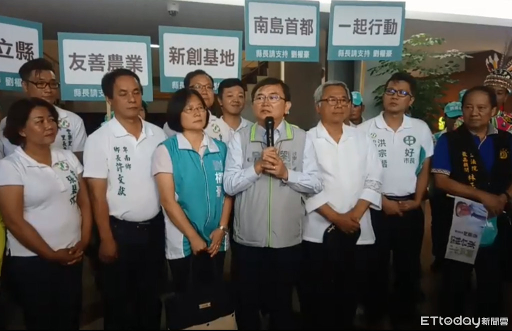 國民黨台東縣長參選人饒慶鈴昨在前總統馬英九等人陪同下大陣仗登記參選,民進黨台東縣長參選人劉櫂豪29日上午則在妻子林子煊及百位支持者陪同下完成候選登記,他也當場公布,由前縣長陳建年接總部主任委員、前立委林正二任原住民後援會總召,「年底選戰將會贏得勝利走進縣政府」。