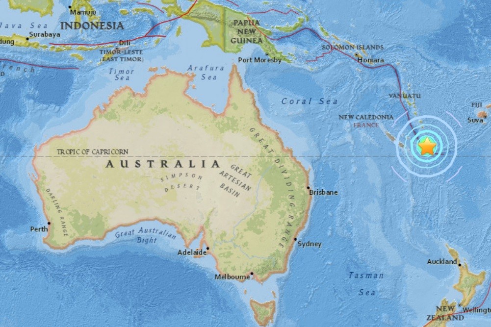 美國海嘯警報系統沒有針對該區域發布海嘯警報,目前不清楚當地的災情。新喀里多尼亞位在南回歸線附近,在澳洲東邊,是法國在大洋洲西南部的一個特別集體,人口大約26萬人,主要由新喀里多尼亞島和洛亞蒂群島組,是法國的海外屬地之一。