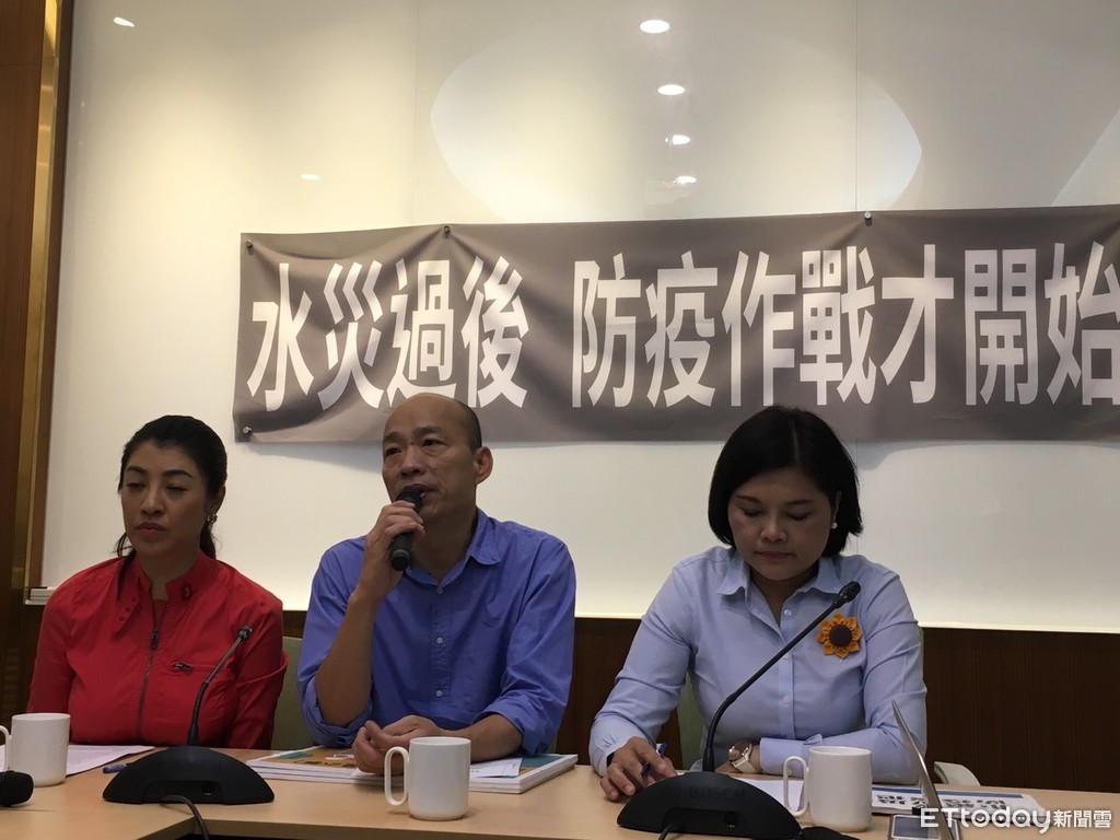 韓國瑜強調,水患過後,登革熱的防治有急迫性,除了農損及災損的補償外,相關單位應立即啟動防疫機制。包括最近也有傳聞淹死的豬肉、雞肉有可能流入市場,在食安的管制上也必須注意;他也很震驚高雄的道路工作「怎麼可以差成這樣」,一場雨下來上千個大大小小的坑洞,大的坑洞甚至連遊覽車都可以開進去,尤其高雄地下多管線,會不會引發更嚴重的災害?