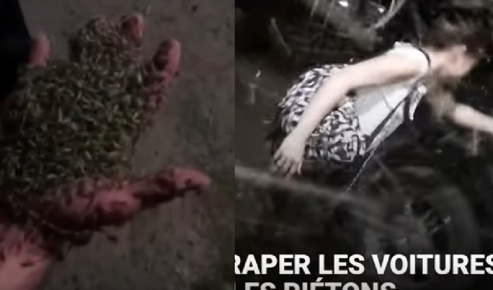 從網路上的影片可看到,一名男子的手完全被詭異怪蟲所覆蓋,鏡頭往四周拍去,居然遍地都可看到群蟲蠕動,天空中也到處都是,眾人幾乎無處可逃,一名女路人嚇得想要逃到上車,但路面因為群蟲而變得很滑,導致她不小心摔倒。
