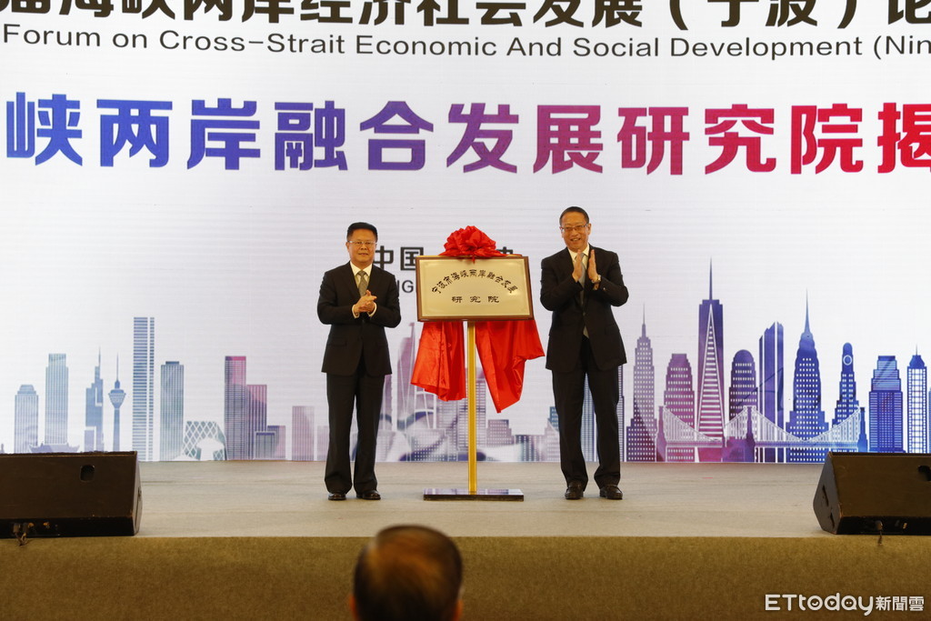 ▲大陸政協副主席鄭建邦、浙江省委副書記鄭柵潔為研究院正式揭牌 。(圖/寧波市台辦提供)