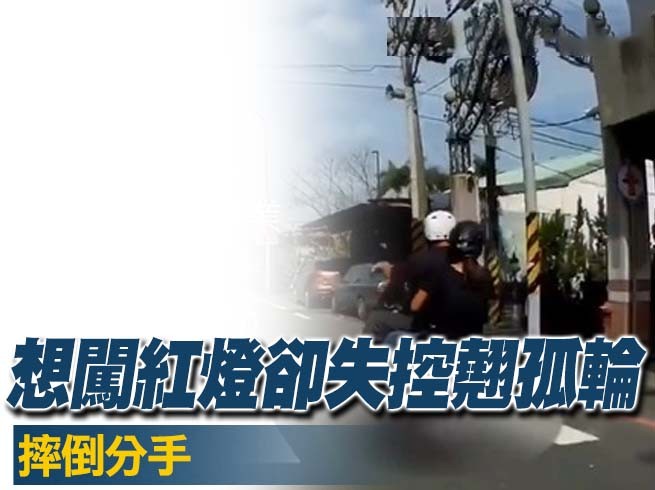 「黑色豪門企業」日前po一段影片表示,有一位騎士在等紅燈時不斷催油門,最後未等綠燈亮就直接衝出,沒想到卻突然失控,與後座女子當場「翹孤輪」慘摔路邊。不少網友看了笑說「不知道會不會摔到分手」。