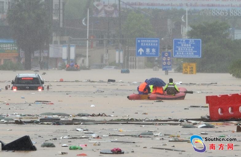 廣東省連日暴雨,珠三角、粵東地區發生嚴重災情,包含珠海、汕頭等多個城市都出現嚴重積水,深度超過一公尺。據廣東省氣象局監測,惠州惠東縣高潭鎮日降水量達1034.4毫米,約相當於北京1.5年的降雨量。