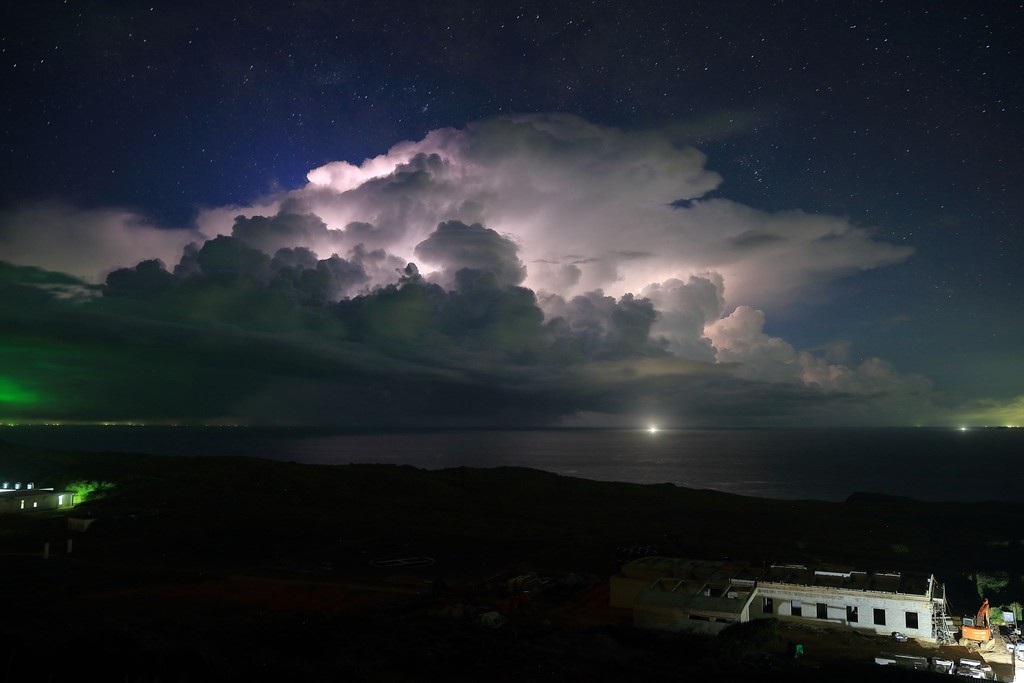 台灣有一張照片入選,是由氣象局駐彭佳嶼同仁傅譯鋒拍攝,可見黑夜中,厚實雲層內有旺盛的雷雨胞正在發展,閃電照亮滿天星辰的夜空,十分壯麗,和大海中的漁船燈光相呼應。