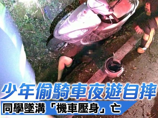 警方調查,林少、吳少是好友,一起念雙溪高中附設國中部,1日凌晨近1時許,林無照載吳在住處附近夜遊,行經雙溪區梅竹蹊63號附近摔車,兩人摔落約50公分深的未加蓋水溝。