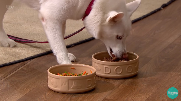 ▲如果在狗狗面前擺一碗菜和一碗肉,牠會選擇吃素嗎?(圖/翻攝自YouTube/This Morning,下同)