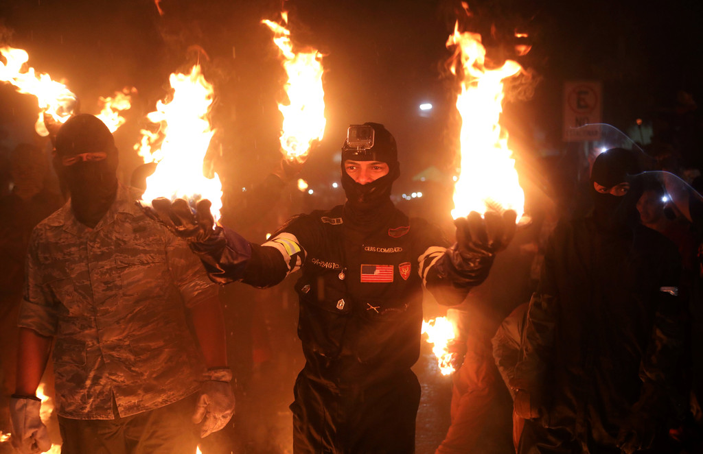 ▲參與慶典會全身包覆,以免被火球燙傷。(圖/路透社,下同)
