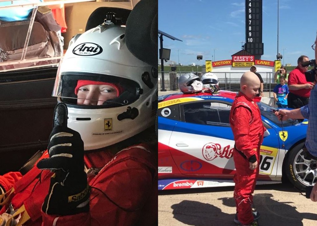美國愛荷華州11歲男孩哈蒙德(Caleb Hammond)2年前診斷患有白血病,近期他病情不佳,治療已停止,喜歡賽車的他,一直希望未來棺木上能貼有法拉利的貼紙。日前佛州一家法拉利代理商得知男孩的故事後,則幫他圓夢,讓哈蒙德坐上價值300萬美元的跑車內,享受奔馳的快感。
