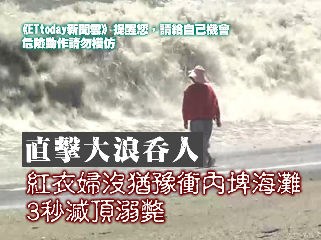 宜蘭南方澳內埤海灘3日上午一名婦人被巨浪捲走,送醫搶救後不治。民眾表示,婦人整個人毫不猶豫往海面撲過去,驚險畫面全被他拍下。