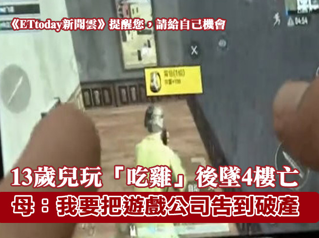 徐母說,警方報告顯示兒子深夜11時46分在玩遊戲,稍晚凌晨0時多鐘就跳樓,「玩的遊戲叫吃雞遊戲,裡面就是叫小孩跳樓沒關係的,出一點血,人會活過來。」據了解,在該遊戲中,玩家可透過跳窗方式從房間中出來,且僅僅會受一點傷,並不危及生命。