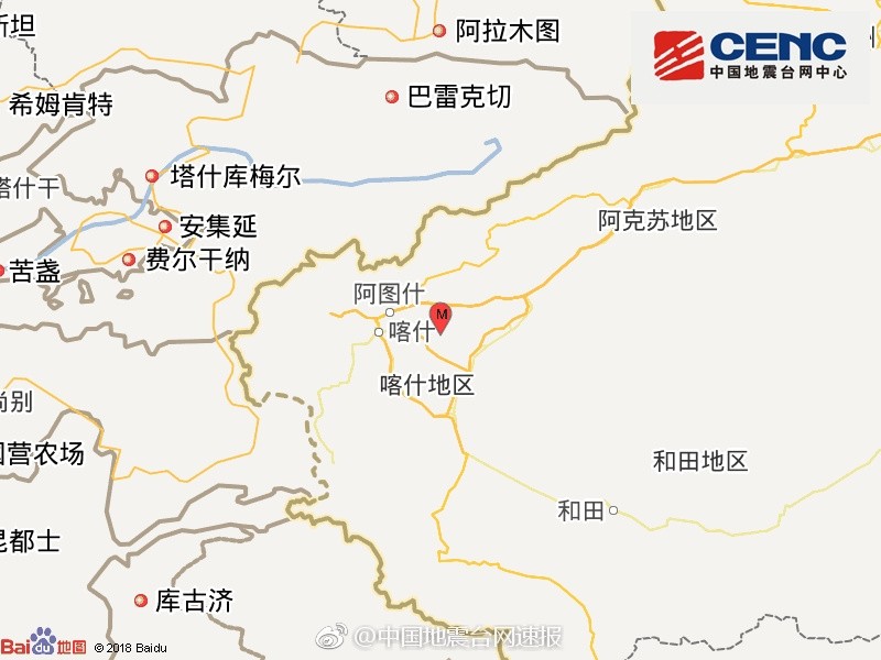 根據中國地震台網正式測定,新疆喀什地區伽師縣4日5時52分發生5.5地震,震源深度8千公尺,地震發生時震央附近縣市震感強烈,有居民從睡夢中被搖醒。所幸截至9時40分為止,當地未傳出有人員傷亡。