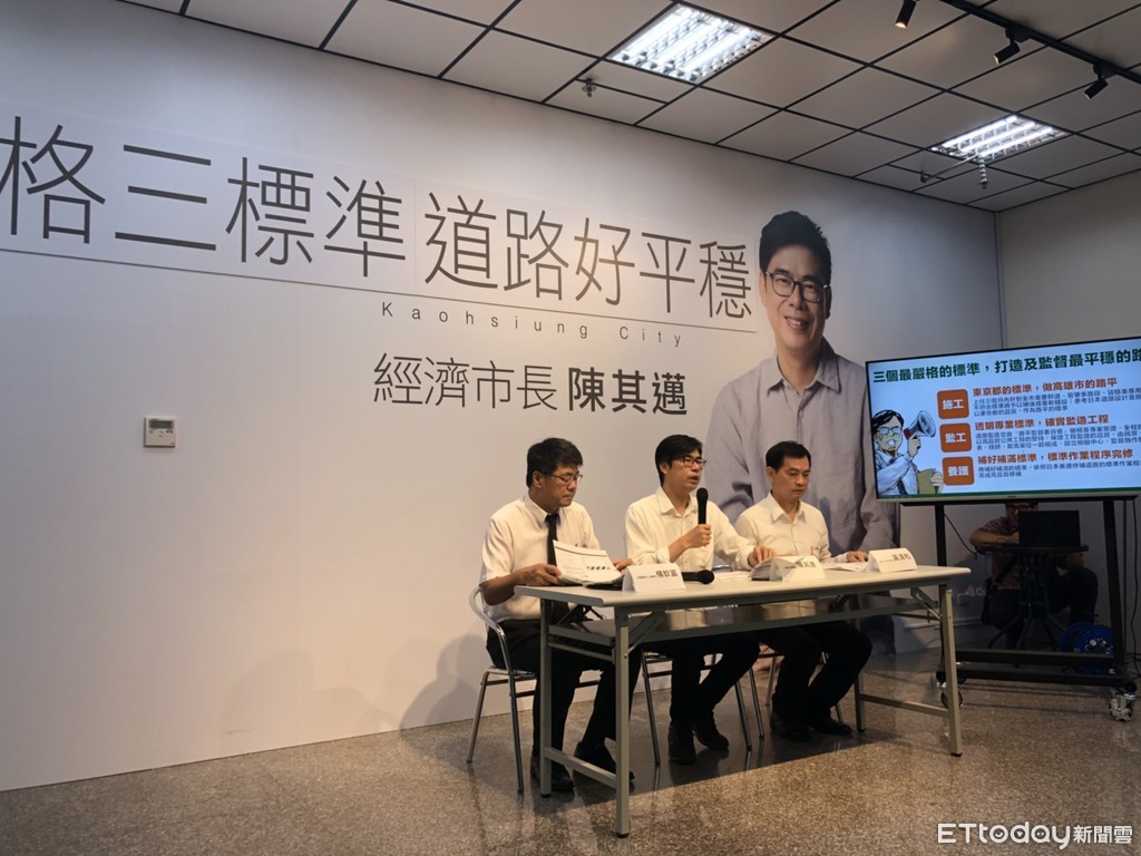 陳其邁表示,未來若選上高雄市長,上任3個月內將針對高雄全市重要幹道及易肇事路段予以補強或重新鋪設,也將參考日本道路設計與施工標準,做為高雄路平的標準。
