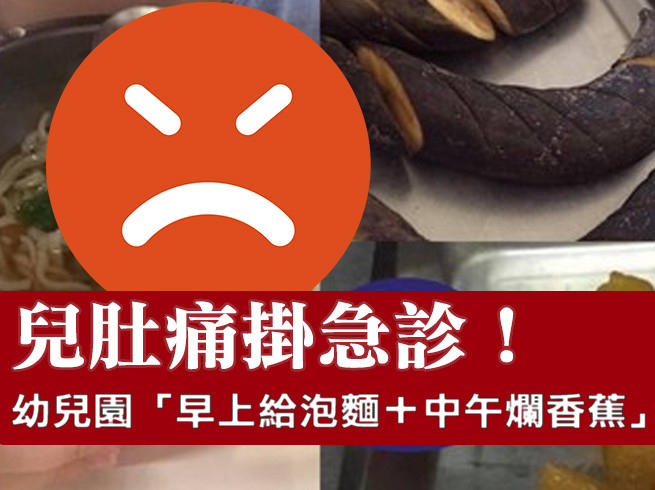 台中一名家長表示,小孩從幼兒園回家後常喊肚子痛,本以為是腸胃蠕動不良,或晚上吃壞肚子,但換了新學校後就很少發生狀況,才發現是原本的幼兒園餐點出問題,讓他氣憤直說「身為教育業,請你至少有點良心」。他也貼出小孩的餐點照,不僅有泡麵、4分之1個沙其馬,還有爛掉的香蕉,讓網友也忍不住喊扯。